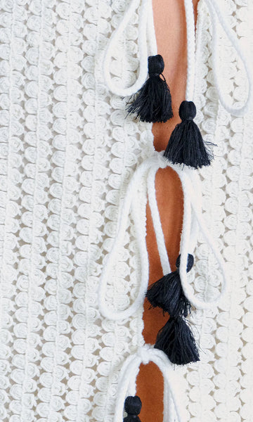 Our Samia is back and reimagined with a crochet charm. This playful skirt features crisp white crochet with a bold black ricrac trim that adds just the right amount of contrast. Pair the mini skirt with our 'Linear Cut Top' for the perfect matching set.